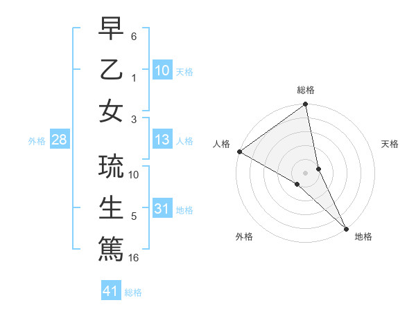 早乙女 琉生篤さんの総格は41画の5点
