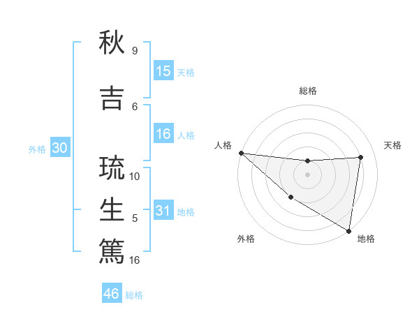秋吉 琉生篤さんの地格は31画の5点!