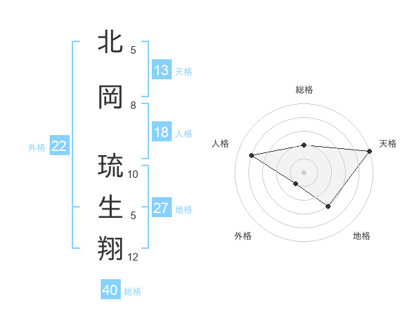 北岡 琉生翔さんを姓名の画数から五運を鑑定