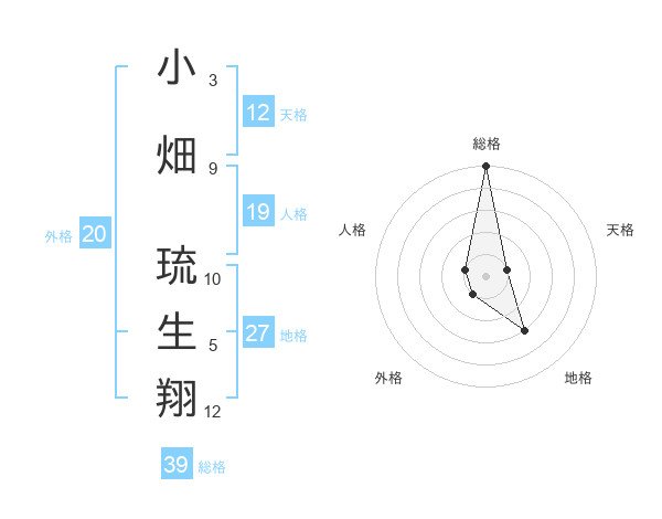 小畑 琉生翔さんを姓名の画数から五運を鑑定