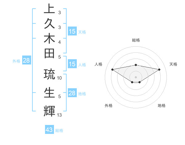 上久木田 琉生輝さんの総格は43画の2点