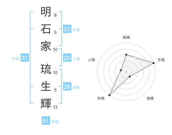 明石家 琉生輝さんを姓名の画数から五運を鑑定