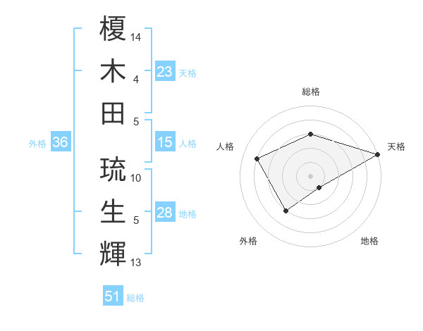 榎木田 琉生輝さんの総格は51画の3点!