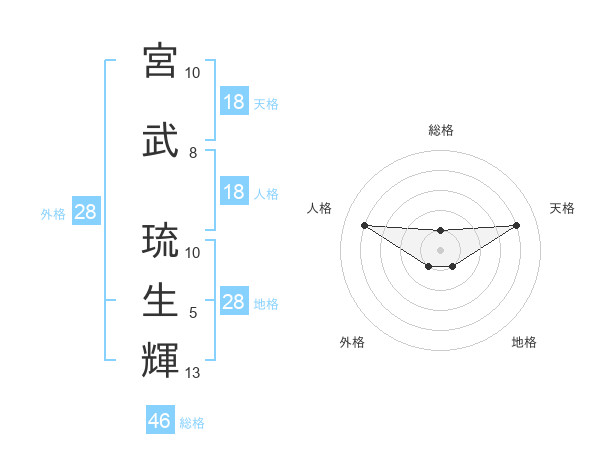 宮武 琉生輝さんを姓名の画数から五運を鑑定
