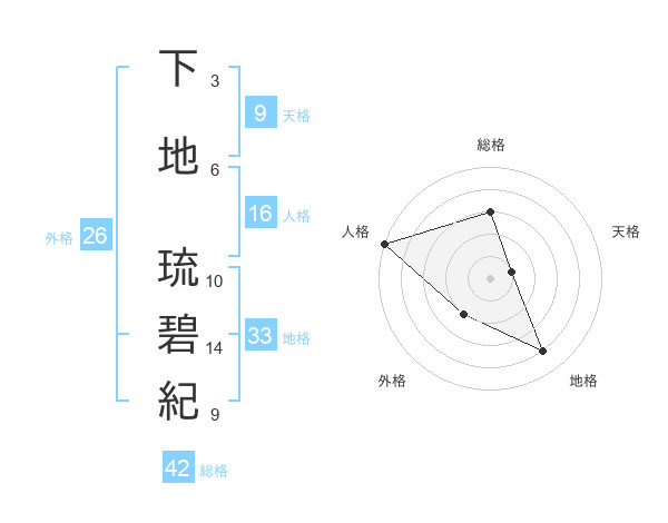 下地 琉碧紀さんを姓名の画数から五運を鑑定