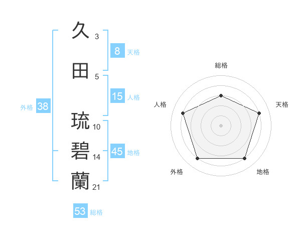 久田 琉碧蘭さんを姓名の画数から五運を鑑定