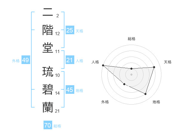二階堂 琉碧蘭さんの天格は25画の4点!