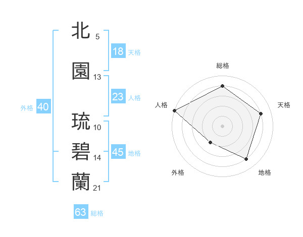 北園 琉碧蘭さんの総格は63画の4点!