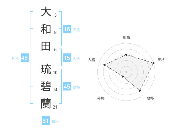 大和田 琉碧蘭さんを姓名の画数から五運を鑑定