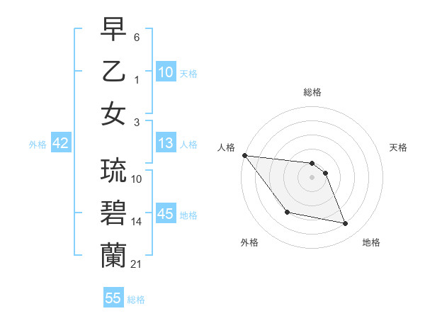 早乙女 琉碧蘭さんの総格は55画の1点!