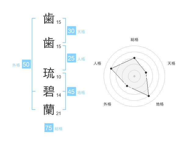 歯歯 琉碧蘭さんの総格は75画の3点!