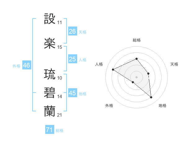 設楽 琉碧蘭さんの総格は71画の3点!