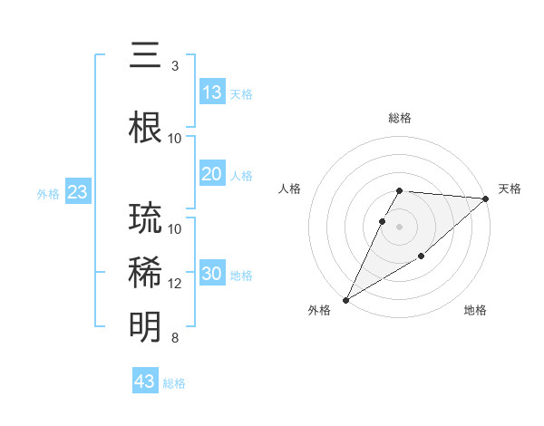 三根 琉稀明さんを姓名の画数から五運を鑑定