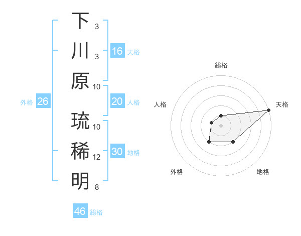 下川原 琉稀明さんを姓名の画数から五運を鑑定