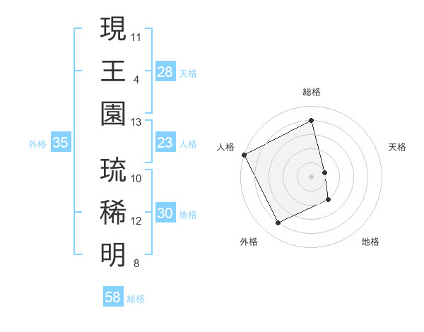 現王園 琉稀明さんの天格は28画の1点!