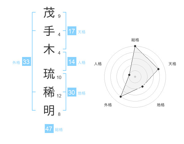 茂手木 琉稀明さんを姓名の画数から五運を鑑定