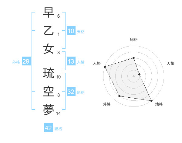 早乙女 琉空夢さんを姓名の画数から五運を鑑定