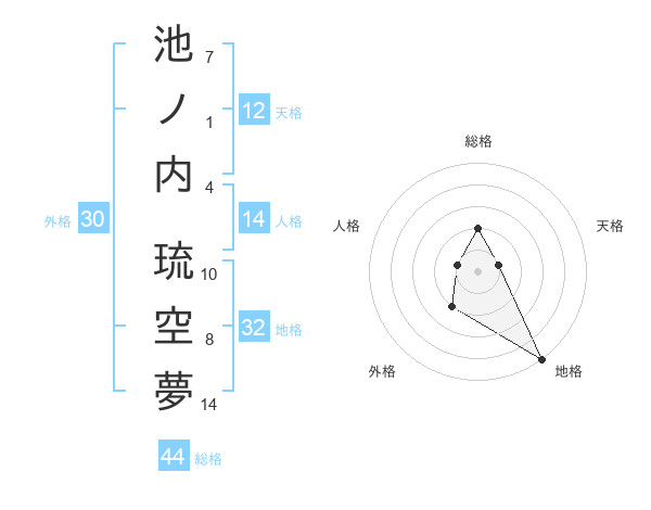 池ノ内 琉空夢さんの総格は44画の2点!