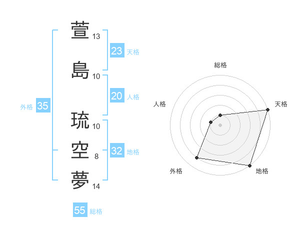 萱島 琉空夢さんを姓名の画数から五運を鑑定