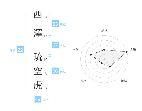 西澤 琉空虎さんを姓名の画数から五運を鑑定