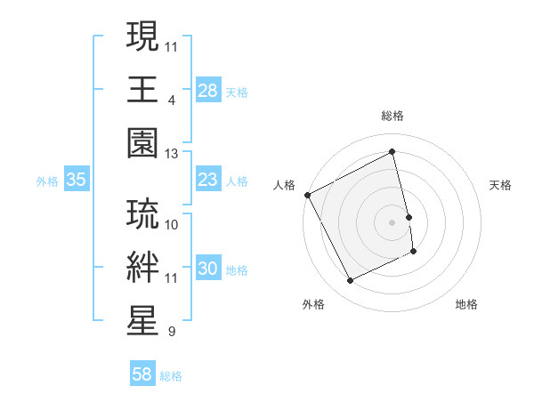 現王園 琉絆星さんを姓名の画数から五運を鑑定