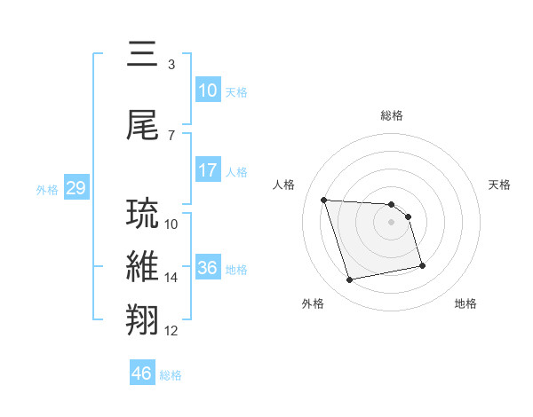 三尾 琉維翔さんを姓名の画数から五運を鑑定