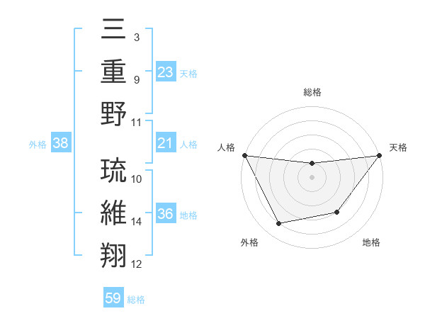 三重野 琉維翔さんを姓名の画数から五運を鑑定