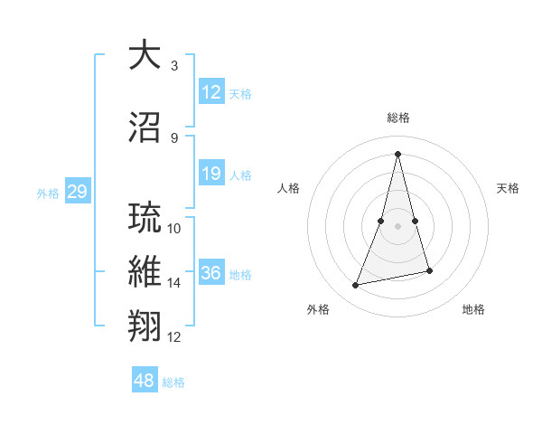 大沼 琉維翔さんの外格は29画の4点!