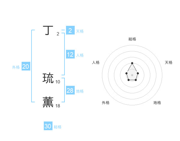 丁 琉薫さんの総格は30画の2点!