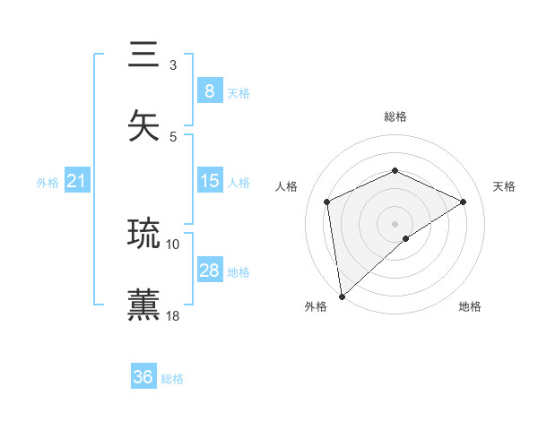 三矢 琉薫さんを姓名の画数から五運を鑑定