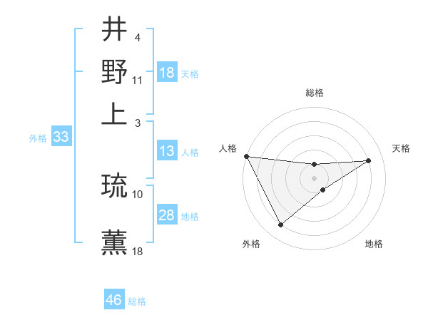 井野上 琉薫さんを姓名の画数から五運を鑑定
