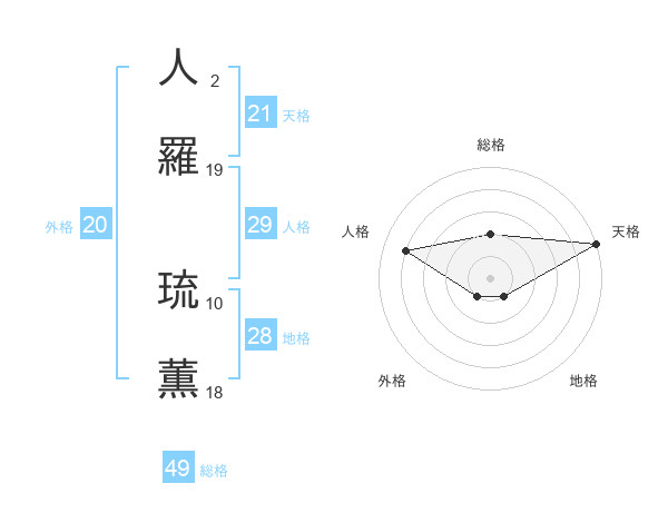 人羅 琉薫さんの天格は21画の5点!
