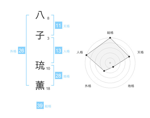 八子 琉薫さんを姓名の画数から五運を鑑定