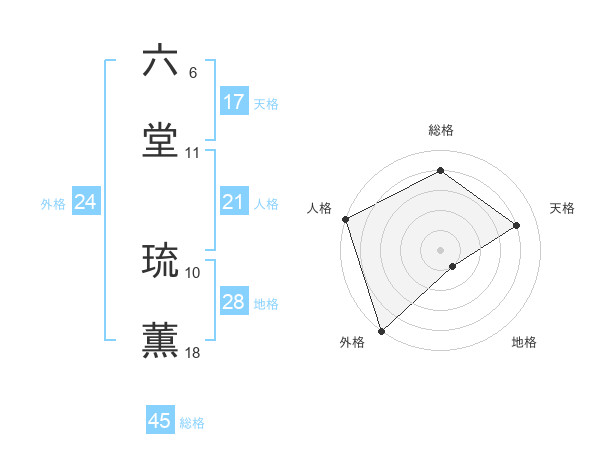六堂 琉薫さんを姓名の画数から五運を鑑定