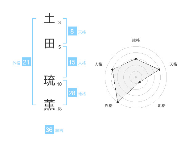 土田 琉薫さんを姓名の画数から五運を鑑定