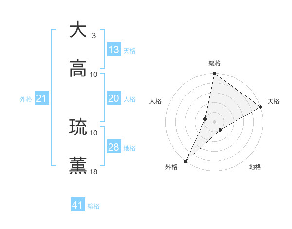 大高 琉薫さんの総格は41画の5点!