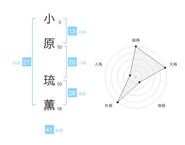 小原 琉薫さんの総格は41画の5点!
