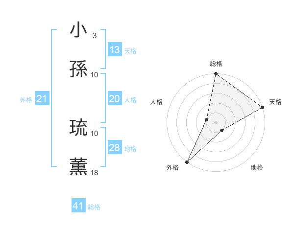 小孫 琉薫さんの天格は13画の5点!