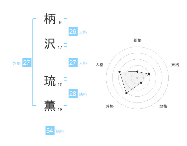 柄沢 琉薫さんの総格は54画の1点!