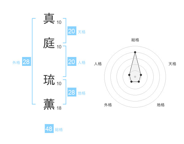 真庭 琉薫さんを姓名の画数から五運を鑑定
