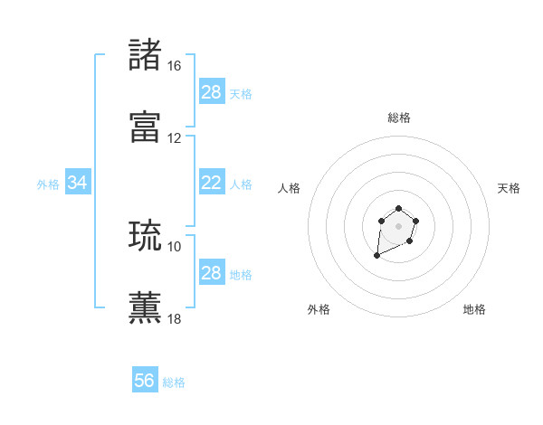 諸富 琉薫さんの総格は56画の1点!