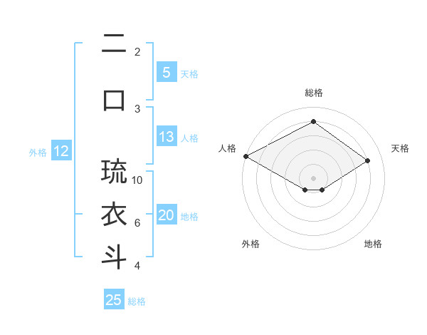 二口 琉衣斗さんを姓名の画数から五運を鑑定