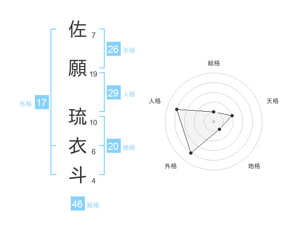 佐願 琉衣斗さんの総格は46画の1点!