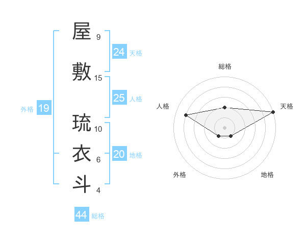 屋敷 琉衣斗さんを姓名の画数から五運を鑑定
