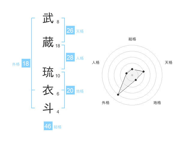 武蔵 琉衣斗さんの外格は18画の4点!