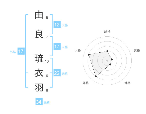 由良 琉衣羽さんの外格は17画の4点!