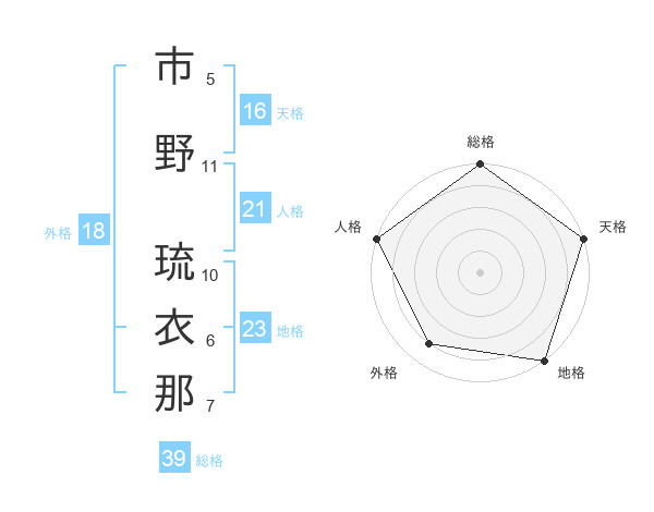 市野 琉衣那さんを姓名の画数から五運を鑑定