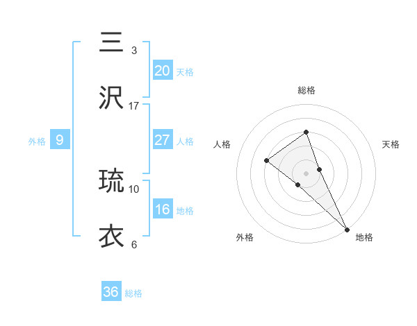 三沢 琉衣さんを姓名の画数から五運を鑑定