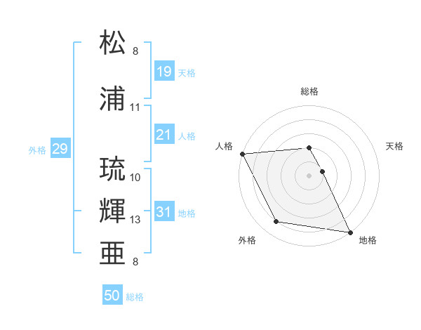 松浦 琉輝亜さんを姓名の画数から五運を鑑定
