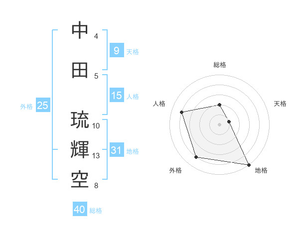 中田 琉輝空さんを姓名の画数から五運を鑑定